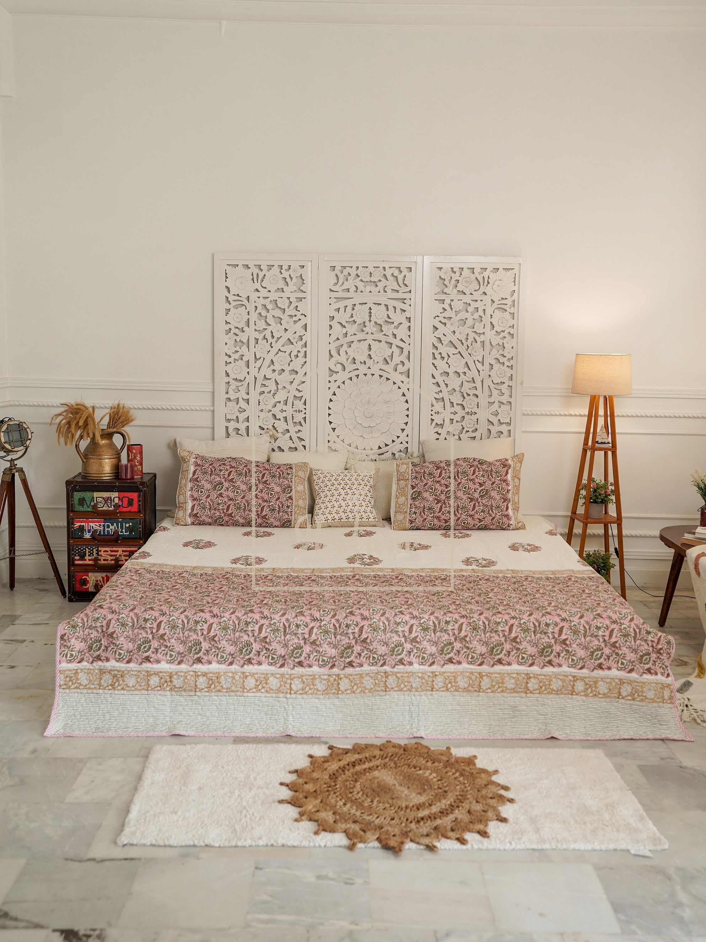 Zahra Hand-Block Cotton Muslin Bedcover with Pillow Covers