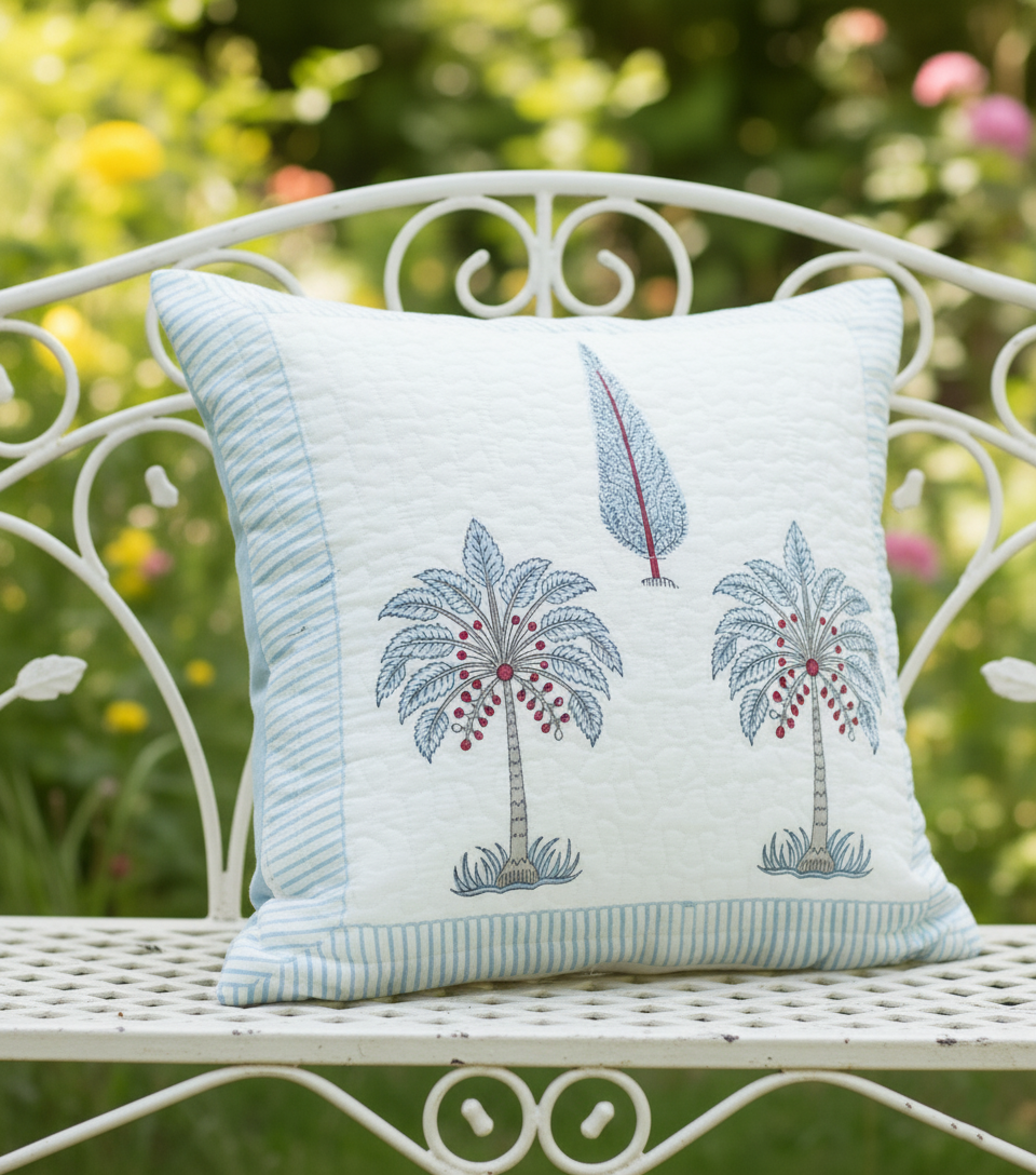 Bring nature-inspired beauty into your home with the Aarohi Hand Block Printed Bedsheet Set. The palm tree motifs on 100% cotton fabric add a refreshing touch to your bedroom. Soft, breathable, and eco-friendly, it’s perfect for Diwali, weddings, or daily comfort.