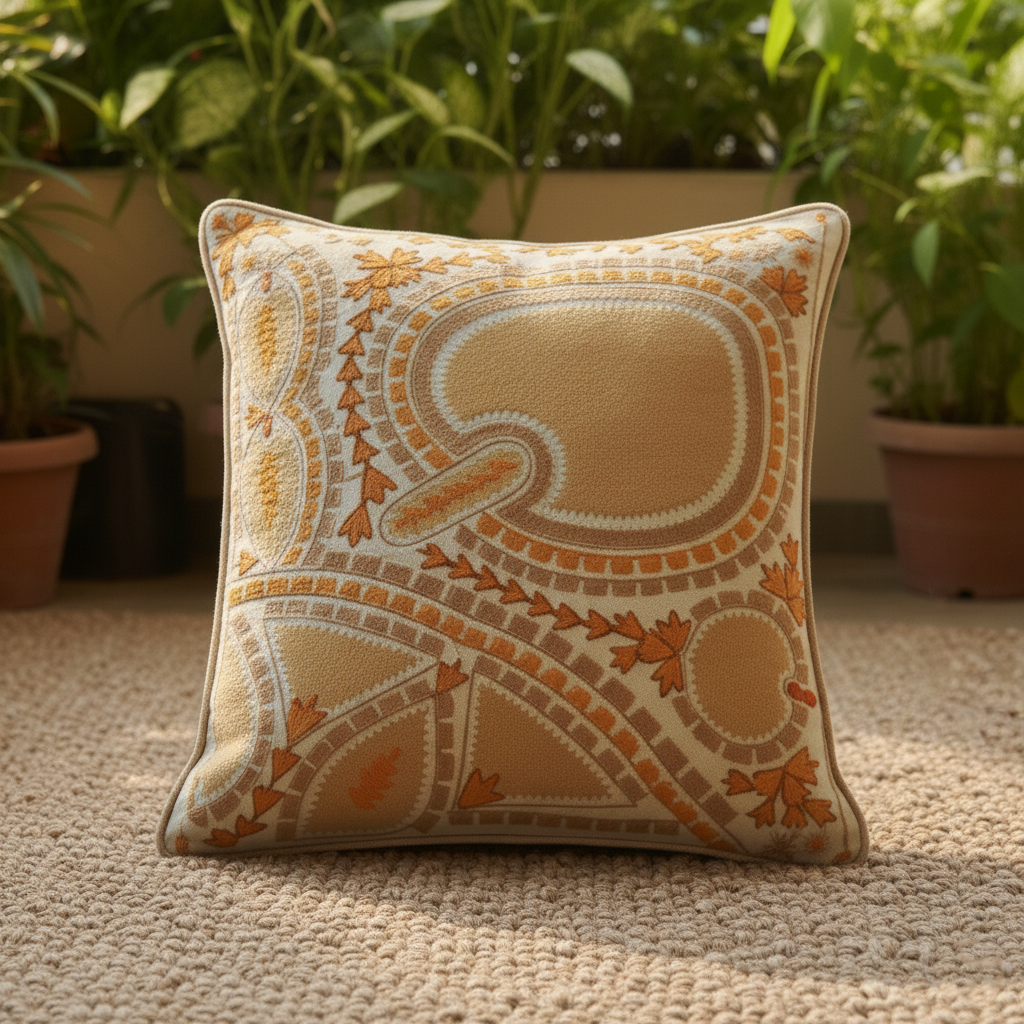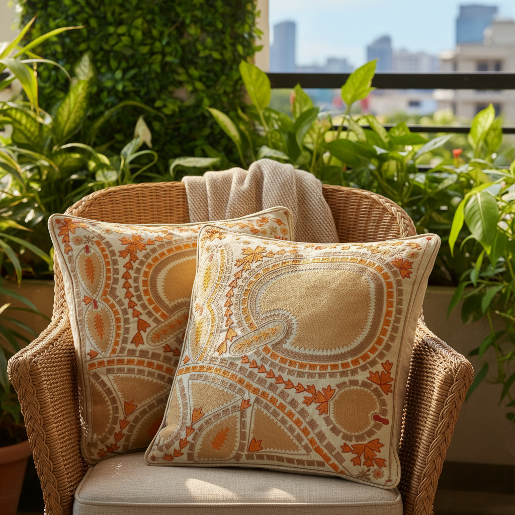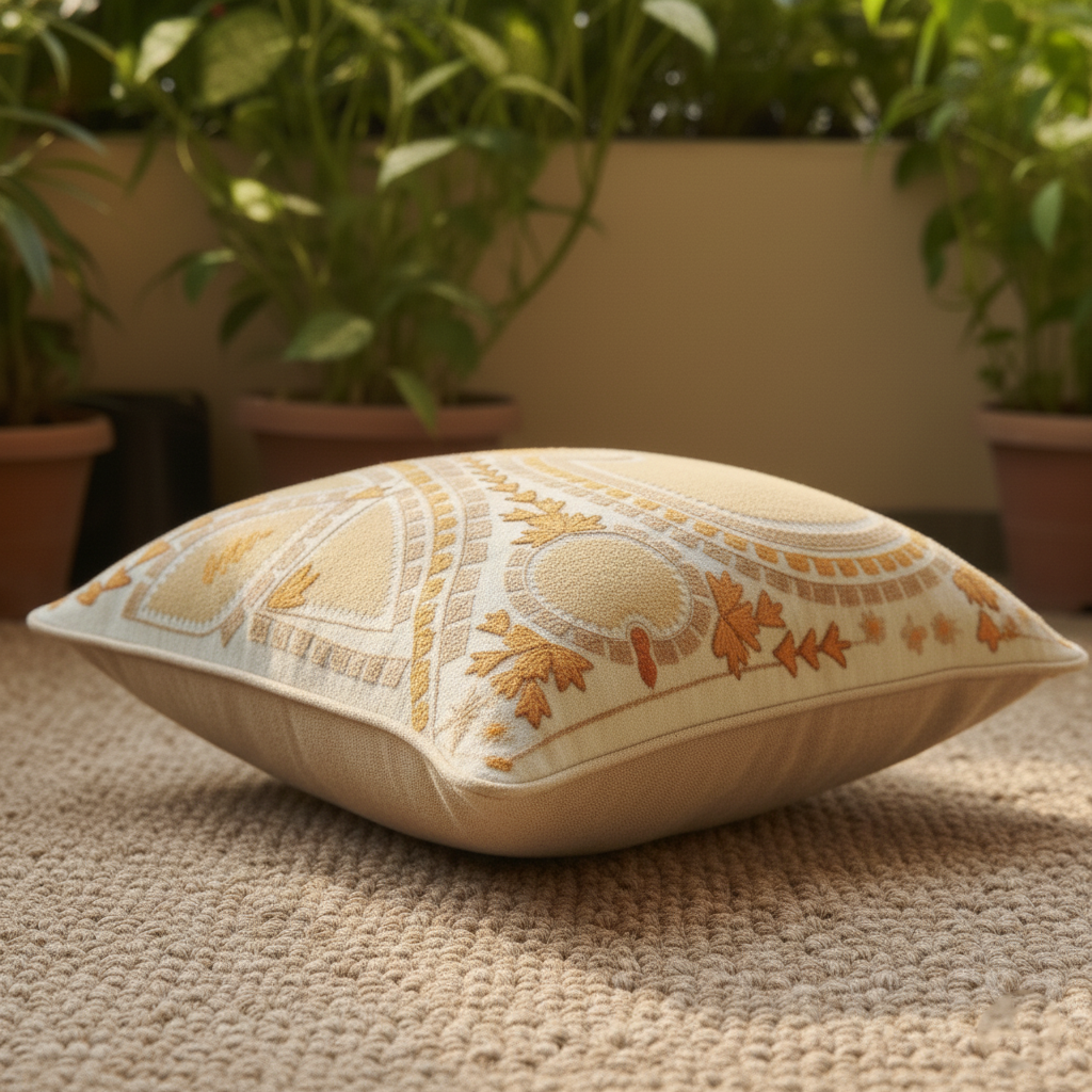 Perfect for Diwali, weddings, or festive gifting, this cushion cover enhances your sofa, living room, or balcony with its sophisticated texture and handcrafted finish. The soft chambray weave ensures durability and everyday comfort while maintaining a rich,