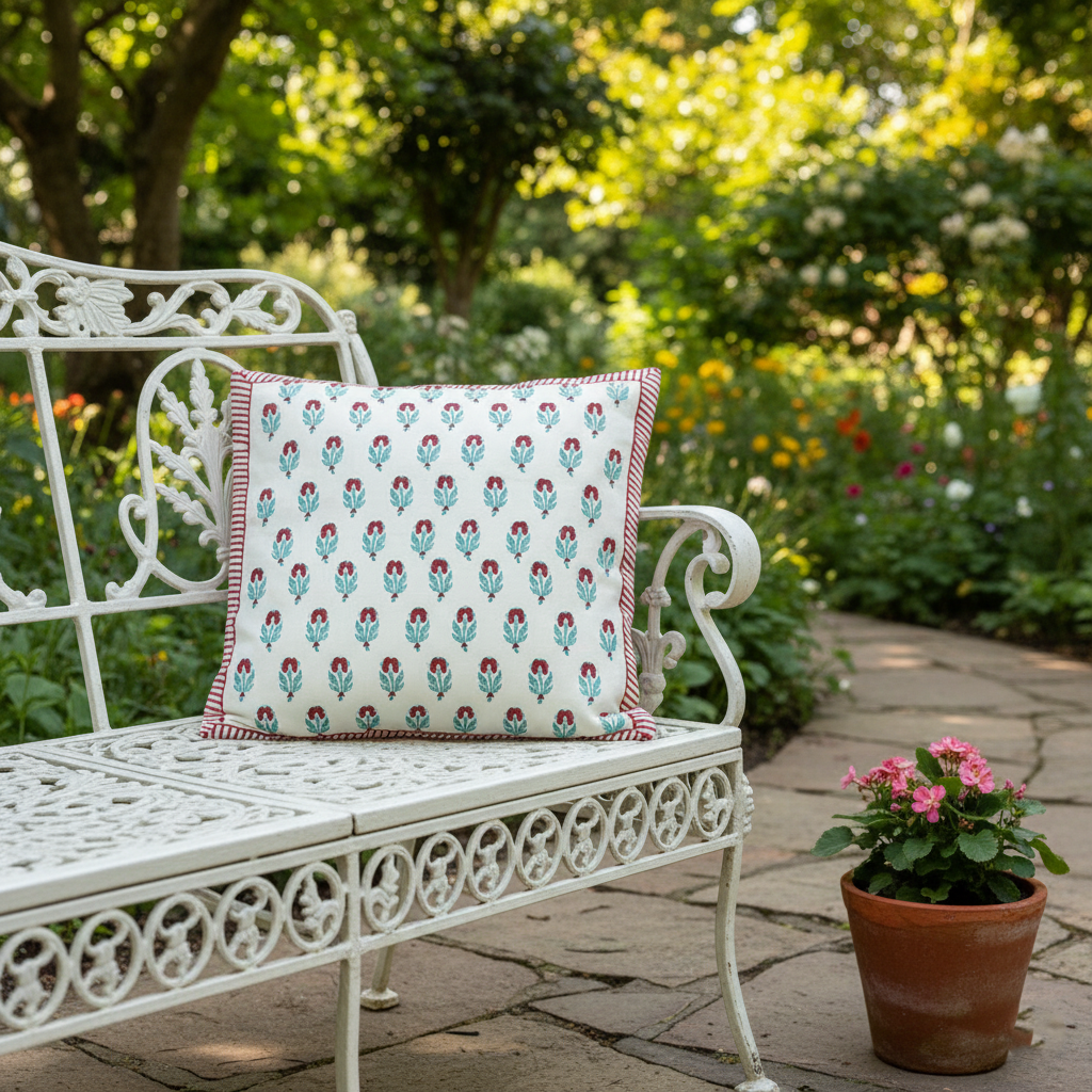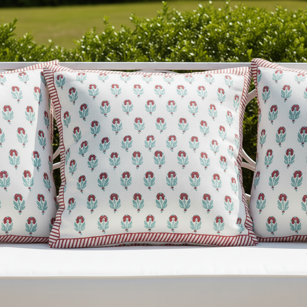 Zahra Hand-Block Cotton Muslin Bedcover with Pillow Covers